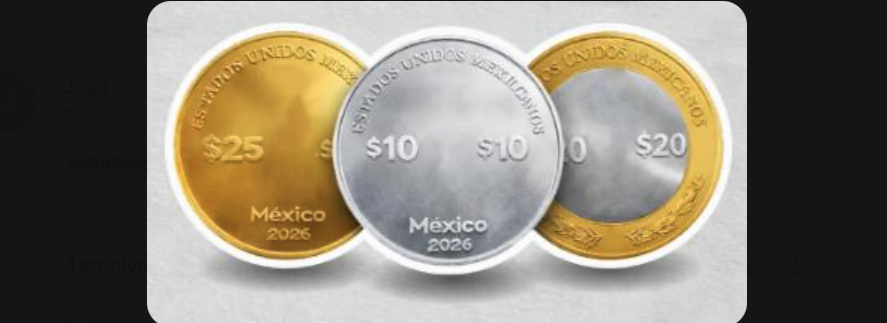Las tres monedas tendrán en el anverso, en el centro, el Escudo Nacional en relieve escultórico, con la leyenda “ESTADOS UNIDOS MEXICANOS” formando el semicírculo superior. Mientras que, en el reverso, el diseño será el que determine el Banco de México, pero debe relacionarse con la Copa Mundial de la FIFA 2026, organizada por México, Estados Unidos y Canadá, señala la información.