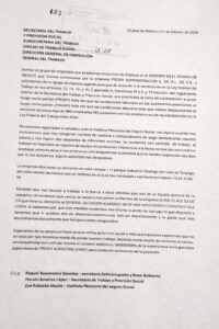 Ese documento sabemos que ya fue recibido el 12 de febrero y está dirigido a Marath Bolaños López, titular de la Secretaría del Trabajo y Previsión Social; Raquel Buenrostro Sánchez, secretaria de Anticorrupción y Buen Gobierno, y Zoé Robledo Aburto, director general del Instituto Mexicano del Seguro Social (IMSS).