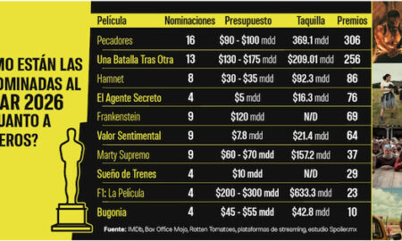 * «Pecadores» lidera en prácticamente todos los rubros: 16 nominaciones, 299 premios y 369.1 millones de dólares en taquilla la colocan como...