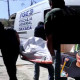 Inconformes, con cartulinas, esperaban el arribó del presidente de la República, Andrés Manuel López Obrador, para exigir atención a sus demandas.