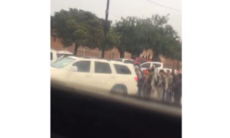 En una de las salidas del retén los presuntos gatilleros del CJNG se encuentran pertrechados y listos para disparar un rifle antiaéreo...
