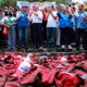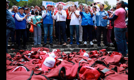 Así arrojaron al piso, chalecos y gorras guindas al grito de ¡Fuera Morena, Fuera Morena!